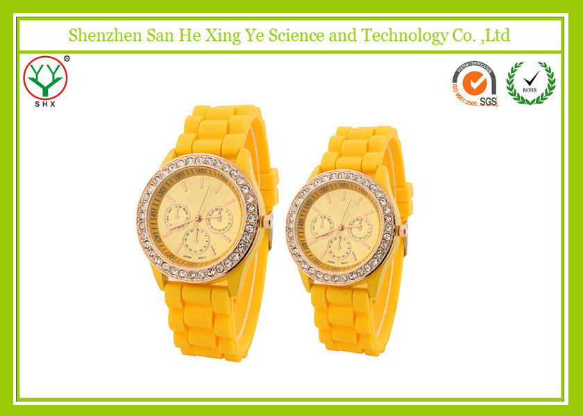Custom Design Silicone Strap Watches With Yellow Band And Sunflower Dial Brand Name SHX Model Number SHX-S17 Certification ROHS/SGS/CE Watchcase Size 48*35 MM Strap Length 20 CM Buckle 20 MM/ Stainless steel 304 Weight 65g Watch movement Japan movement Place of Origin Shenzhen-Guangdong-China Product name Custom Design Silicone Strap Watches With Yellow Band And Sunflower Dial Main material Silicone rubber material Type Fashion, diamond Waterproof Available Color Yellow,