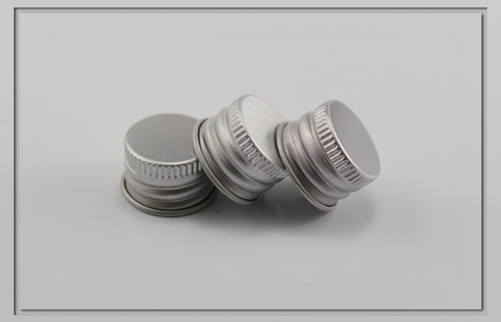 18mm PE foam liner Silver Aluminum Screw Caps for massage oil Quick Detail: 18×12mm Silver Aluminum screw cap with PE foam liner Catalog Number: SC-18-A Material: Aluminum 8011 Outer diameter: 18.4mm Inner diameter: 18mm Height: 12mm Thickness of material: 0.22mm Liner options: PE foam liner , silicone rubber septa, aluminum foil liner , pressure sensitive liner , pulp & aluminum liner , pulp & poly liner , and plastisol Weight: 0.8g (With PE foam liner) Description: This
